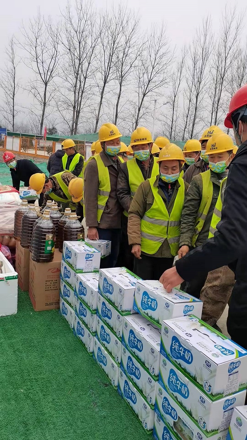 新年伊始,万象更新,一馆一中心项目正如火如荼建设中,寒风吹拂中,县委县政府为忙碌的工人们送来温暖。1月3日,县委书记李代斌一行放弃节假日休息时间到一馆一中心项目地慰问战斗在一线的工人,体现了党和政府对每一位工人的关怀。县总工会为项目部送来一大批粮油食品,发放给施工现场的每一位工人。
