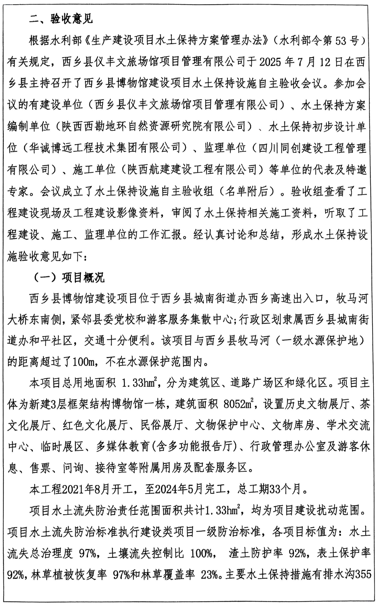 西乡县博物馆建设项目——生产建设项目水土保持设施验收鉴定书