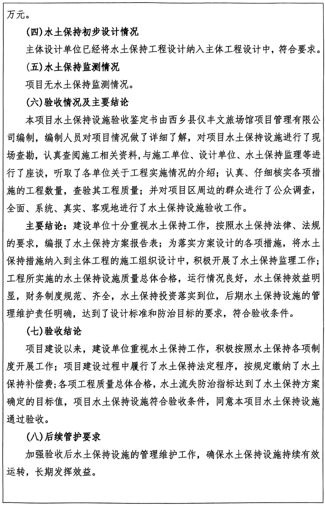 西乡县旅游集散中心建设项目——生产建设水土保持建设验收鉴定书